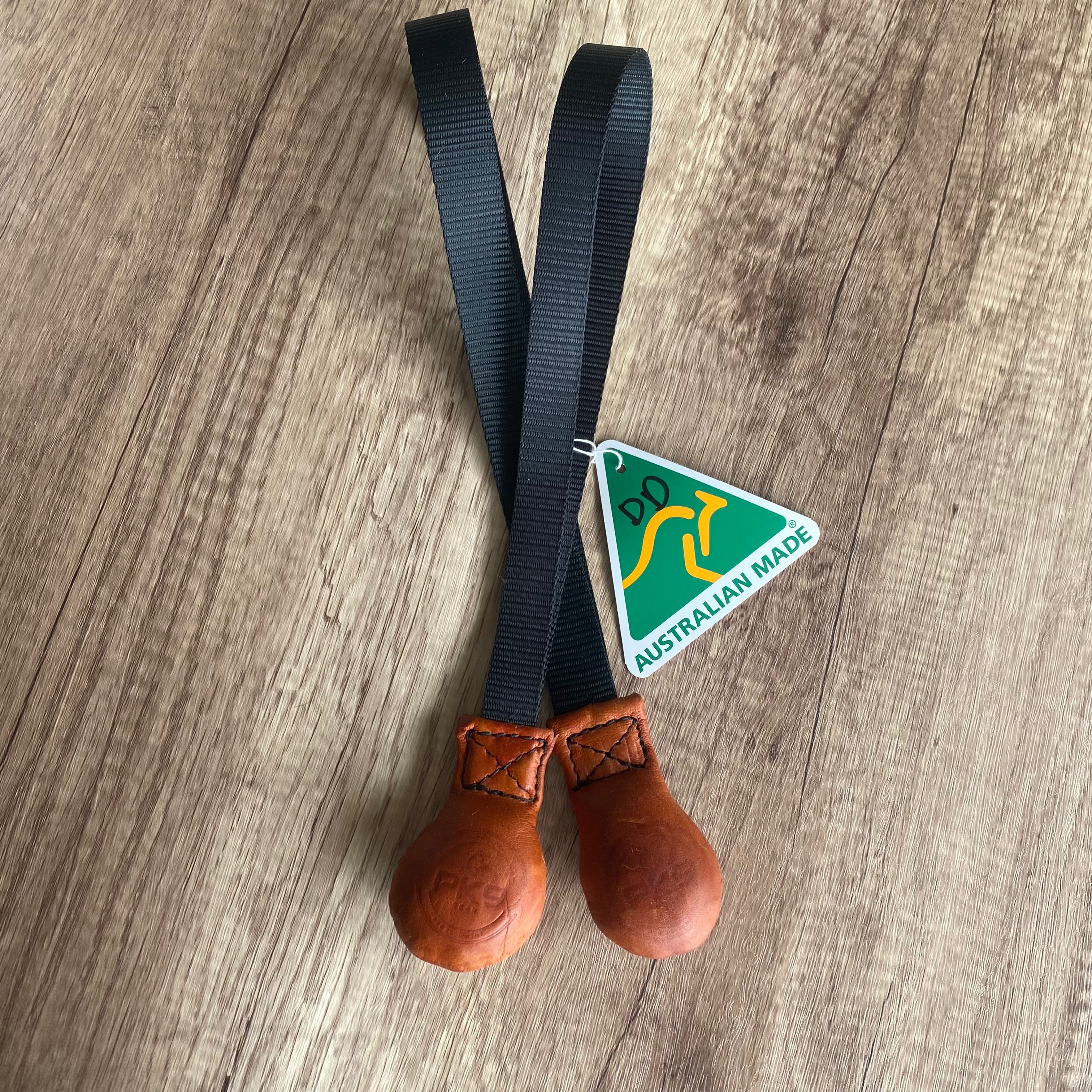 PK9 Gear Tug‑A‑Roo, a kangaroo leather tug toy engineered for high-drive dogs who demand performance and durability. Handcrafted in Australia from premium kangaroo leather scrotum, reinforced with sheepskin and a webbing handle, this toy is built to endure intense tug sessions and interactive training