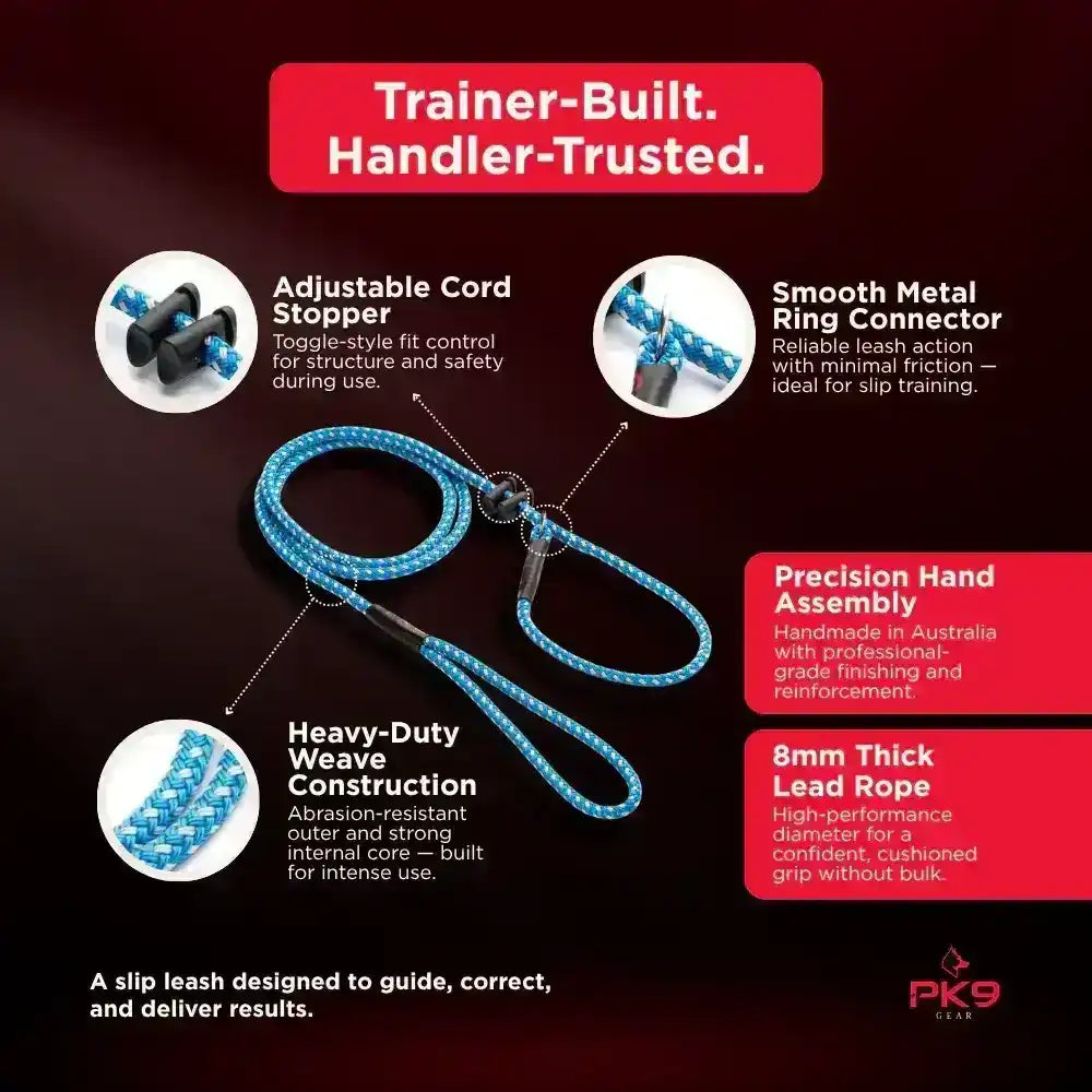 The PK9 Gear Handcrafted Training Slip Leash combines 8mm premium materials with trainer-designed functionality. Handcrafted in Australia, it’s built for strength, control, and effective communication, making it the ultimate tool for training and beyond.