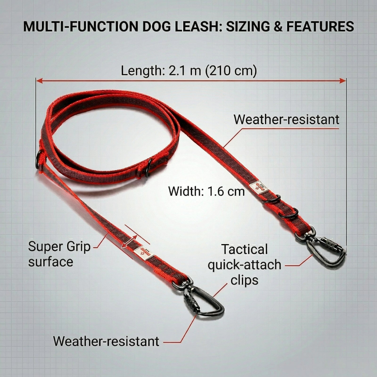 Multi Function Dog Leash With Super Grip And Tactical Clips – Designed for Control & Versatility