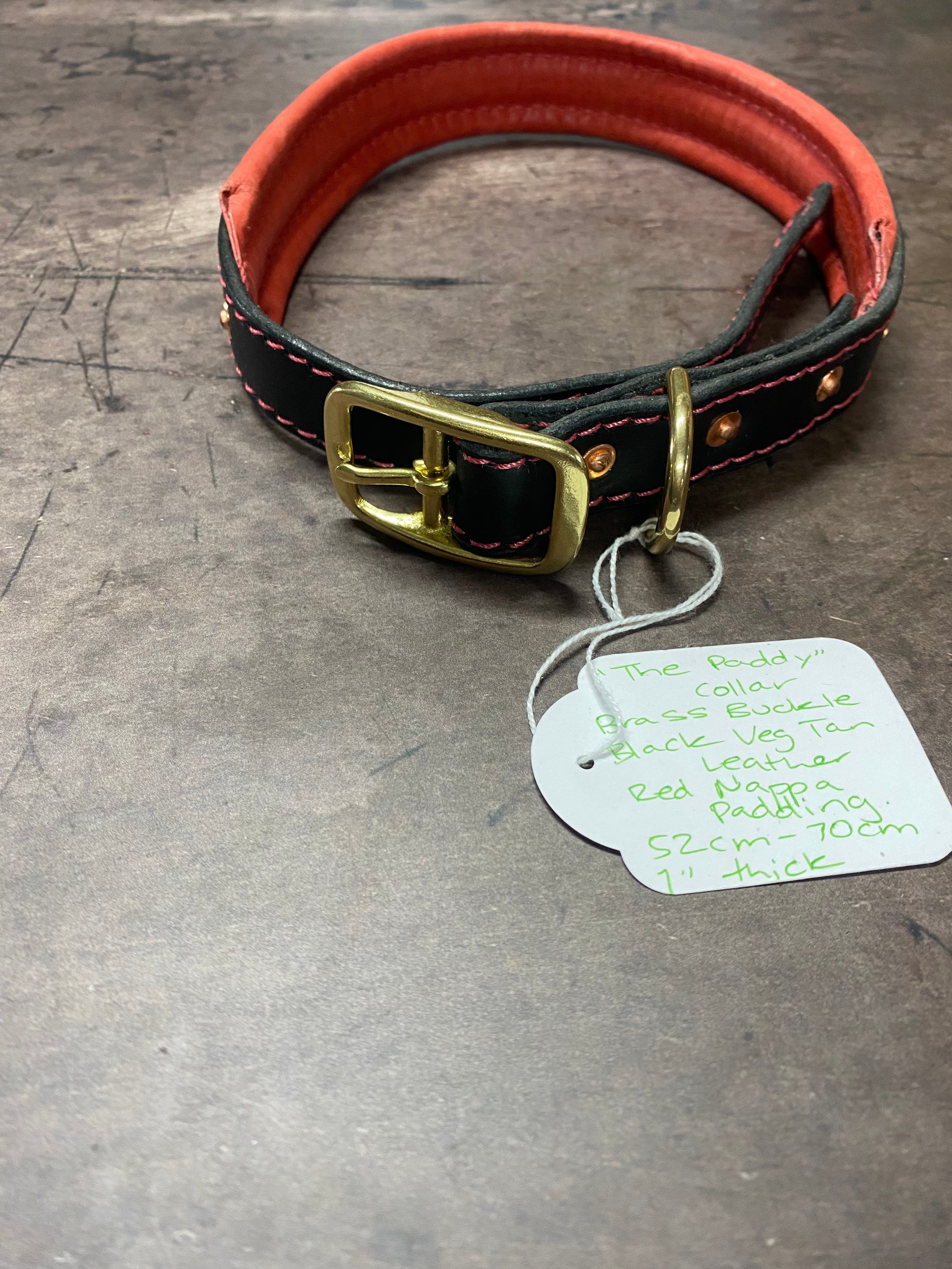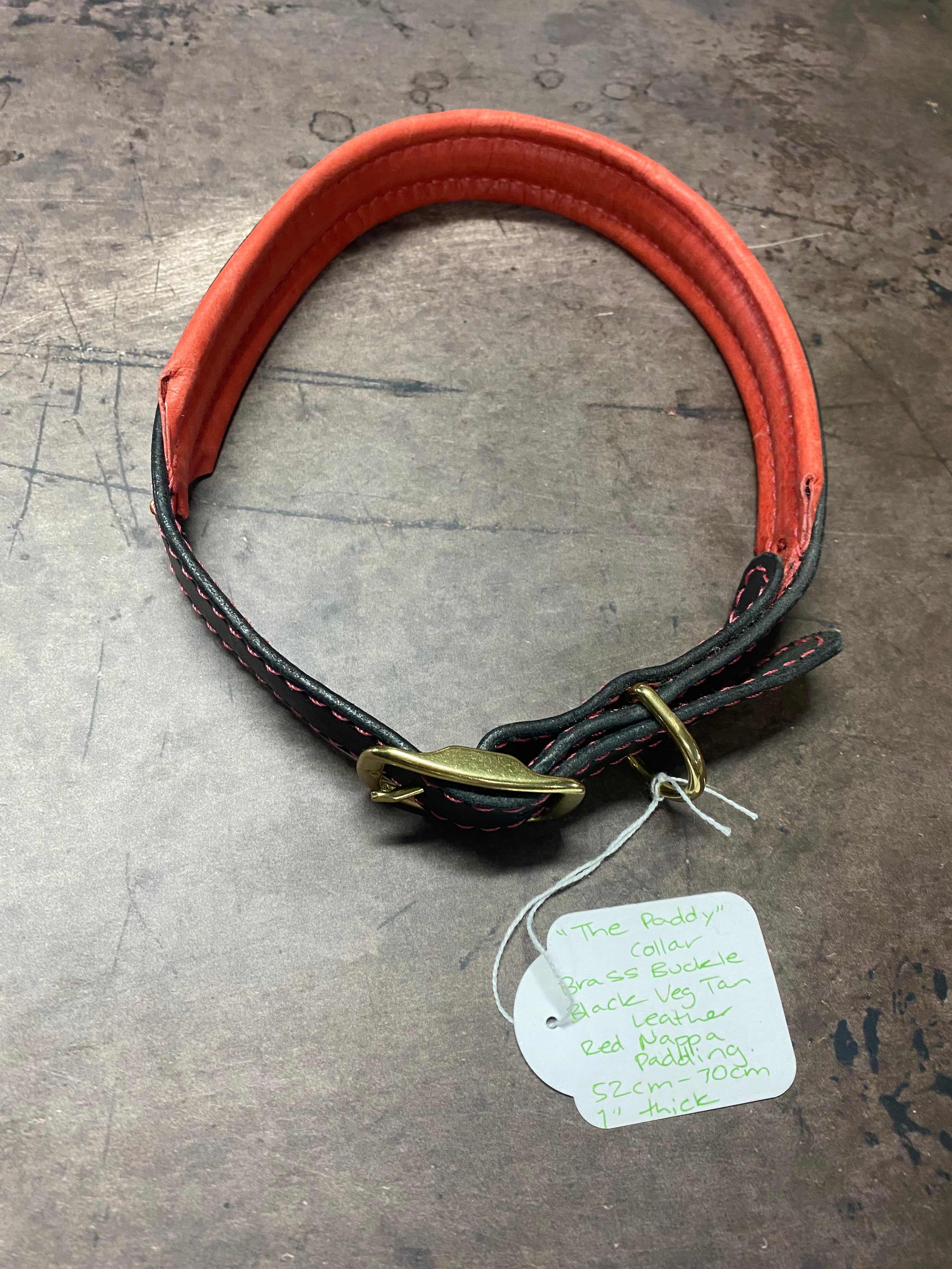 The Paddy Collar – Black Veg Tan Leather, Red Nappa Padding, Brass Buckle