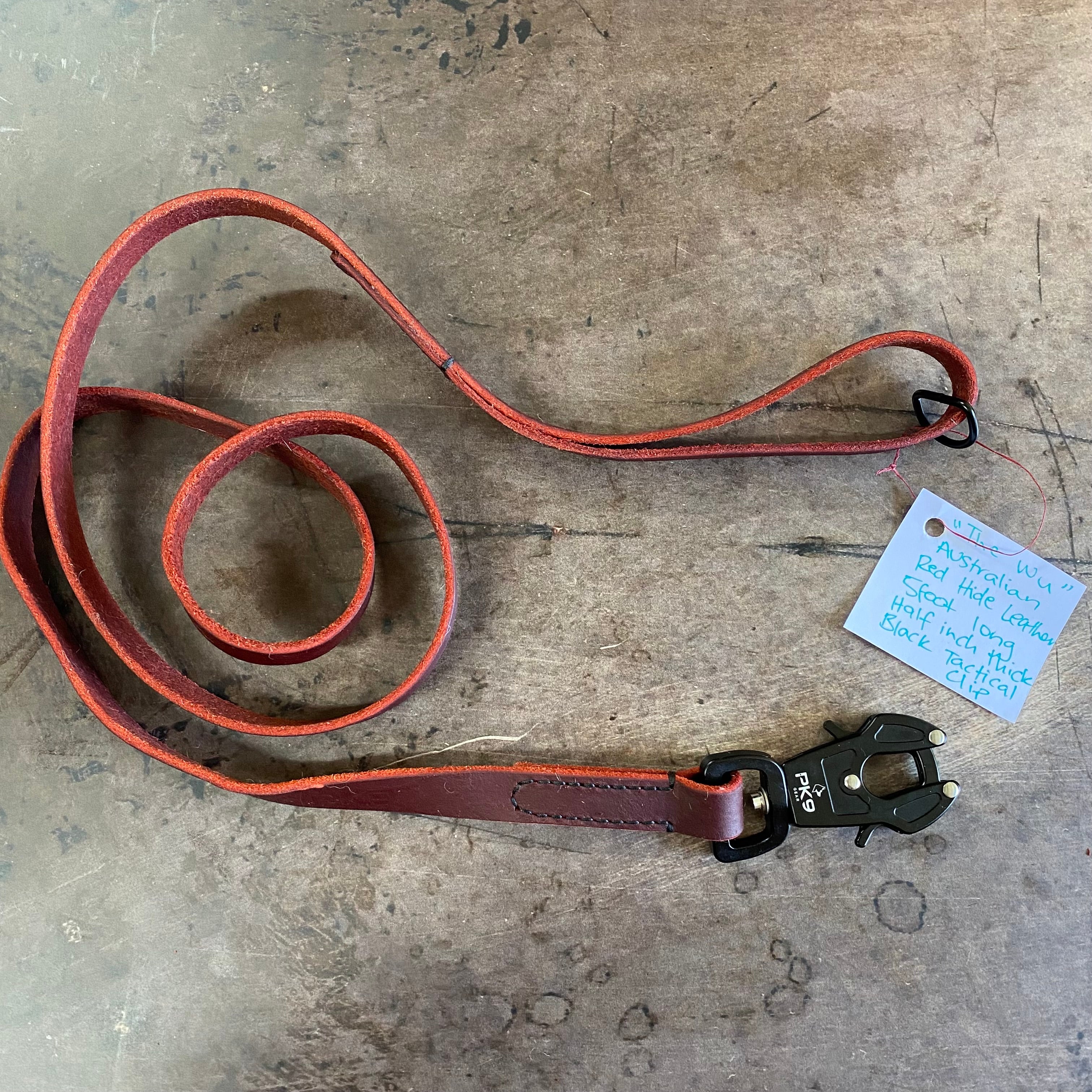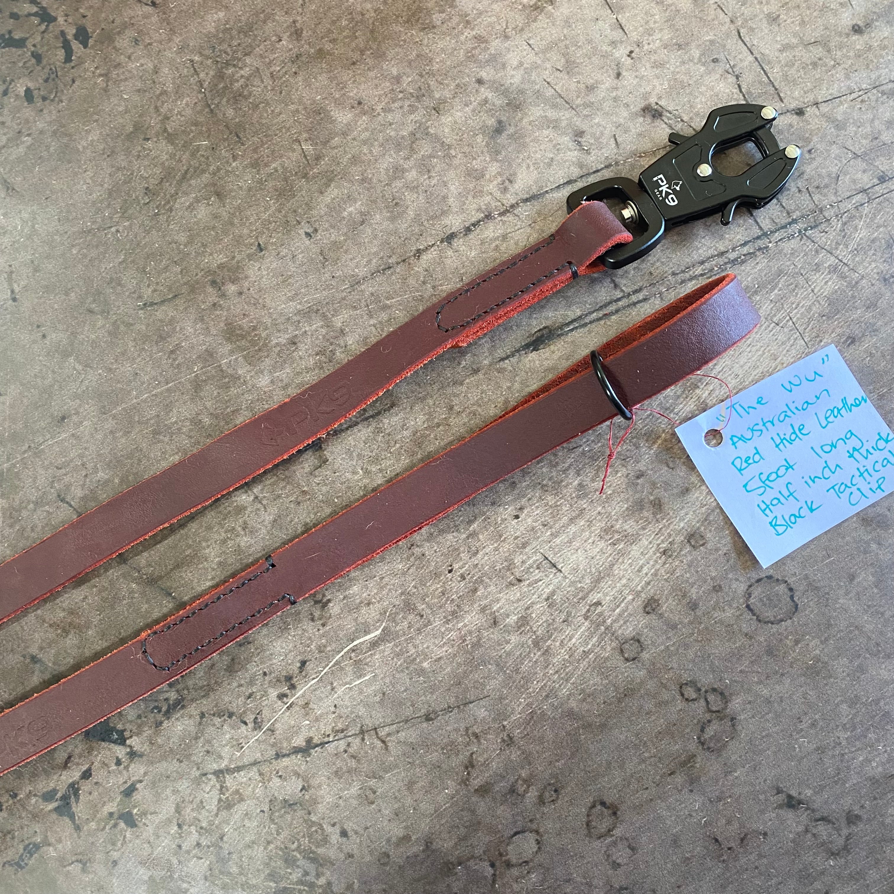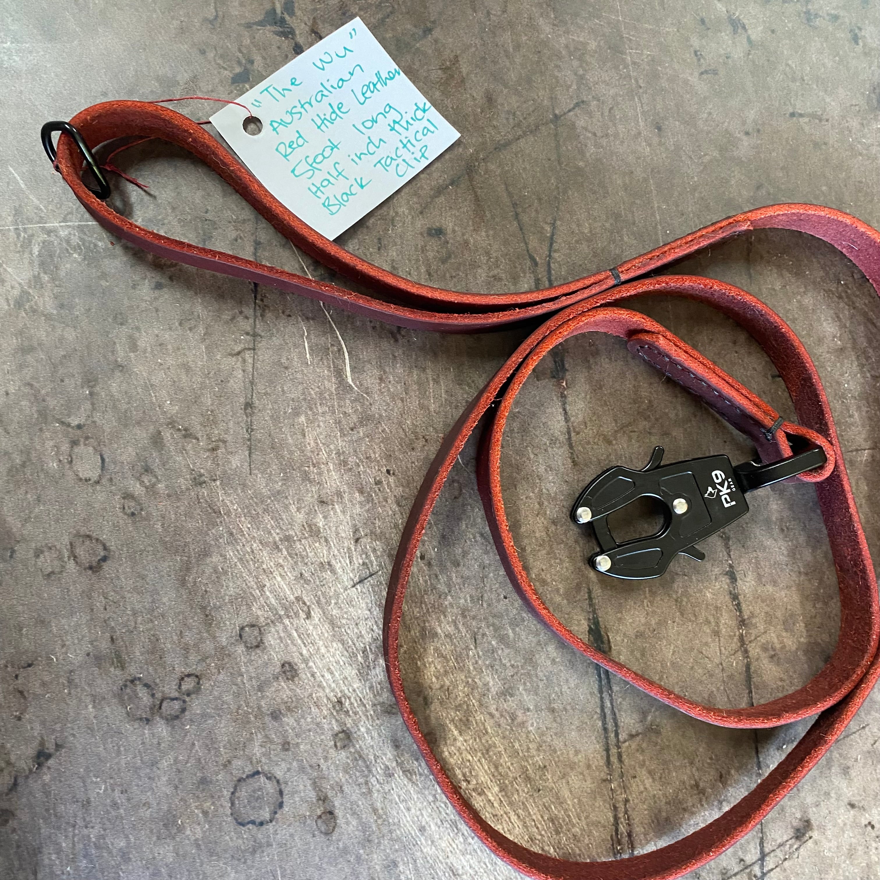 The Wu Lead – 5ft Aussie Red Hide Leather, 1/2" Wide, Black Tactical Clip