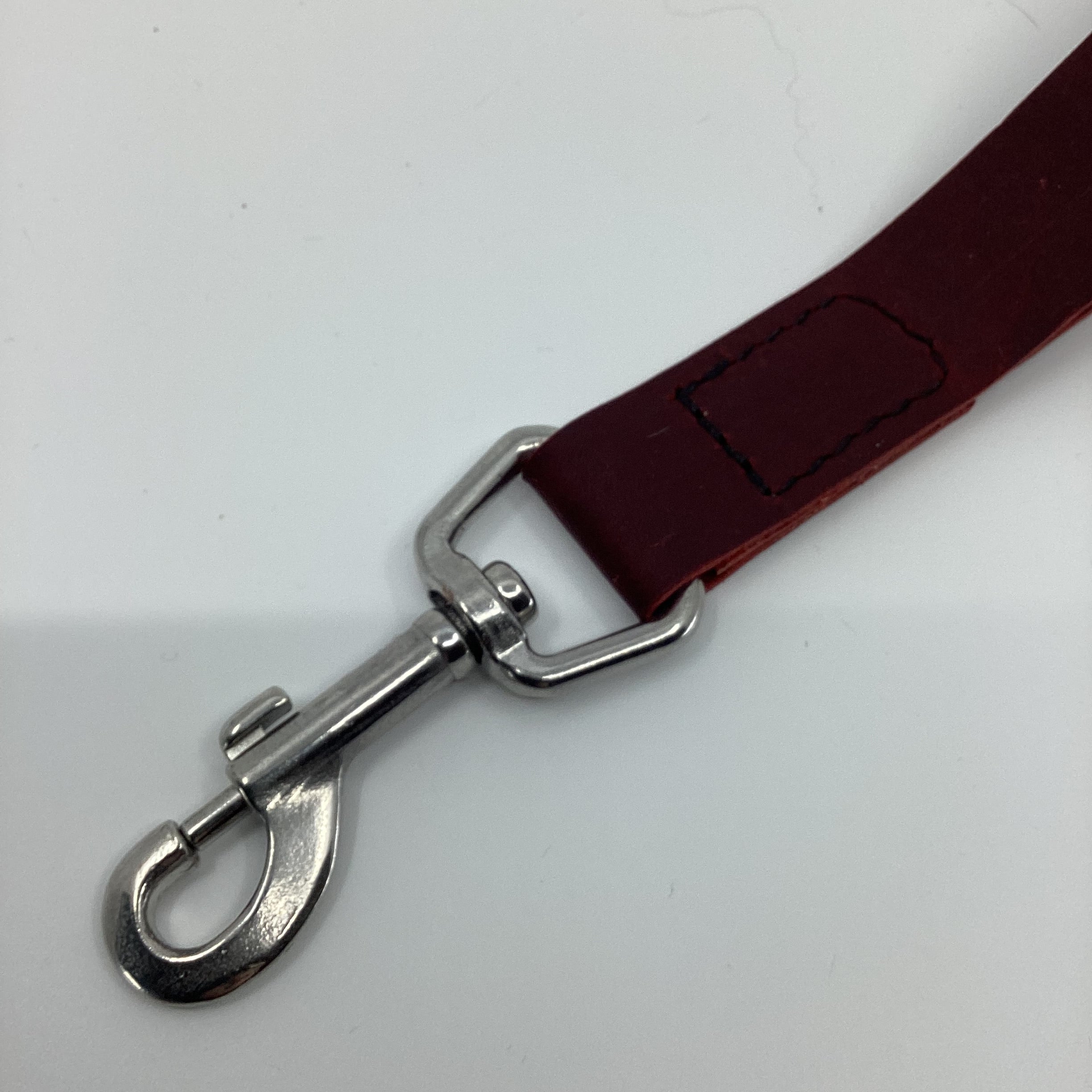Specifications: ∙ Length: 10 inches (25cm) ∙ Width: 1 inch (25mm) ∙ Material: Australian red hide leather ∙ Hardware: Stainless steel trigger snap ∙ Construction: Black stitching
