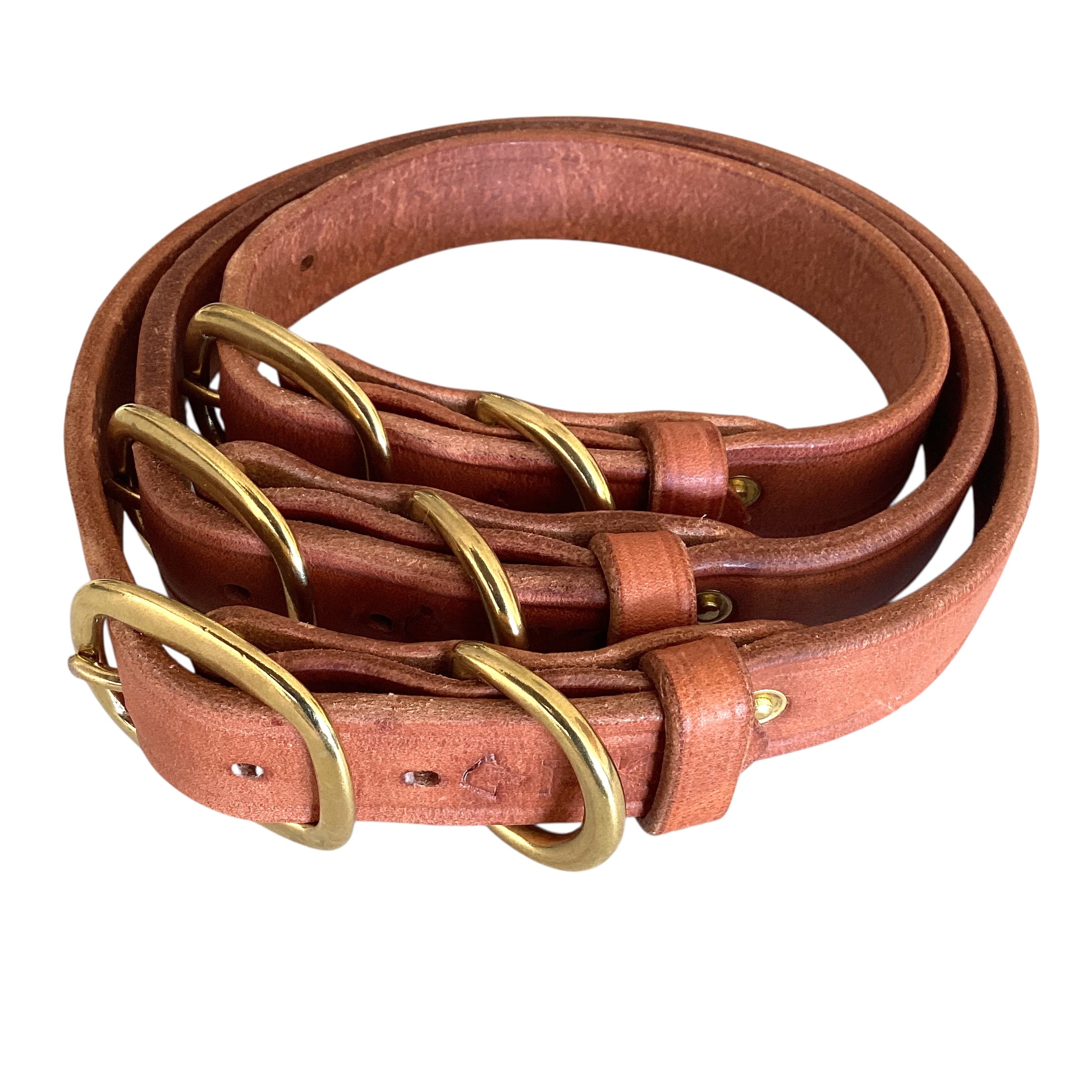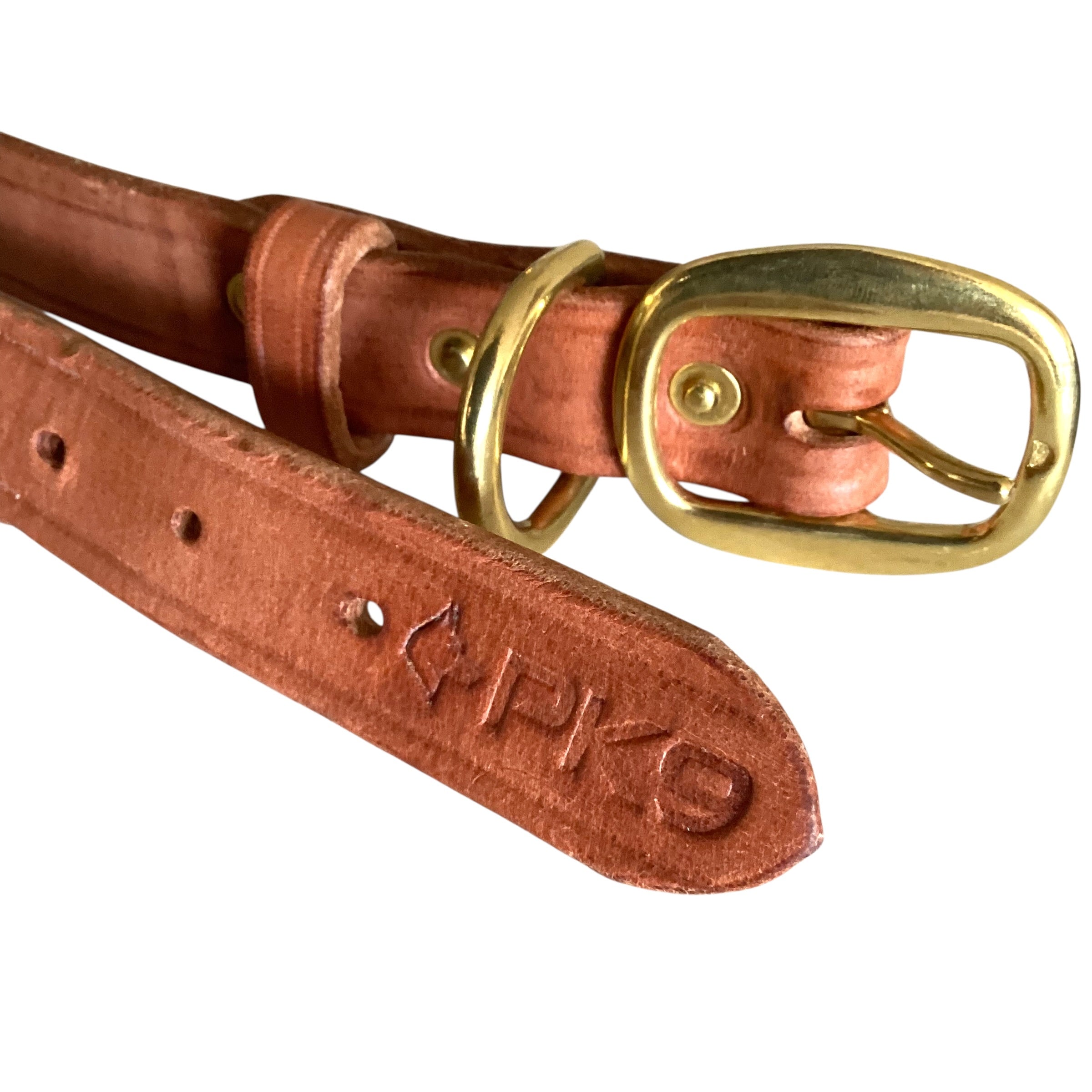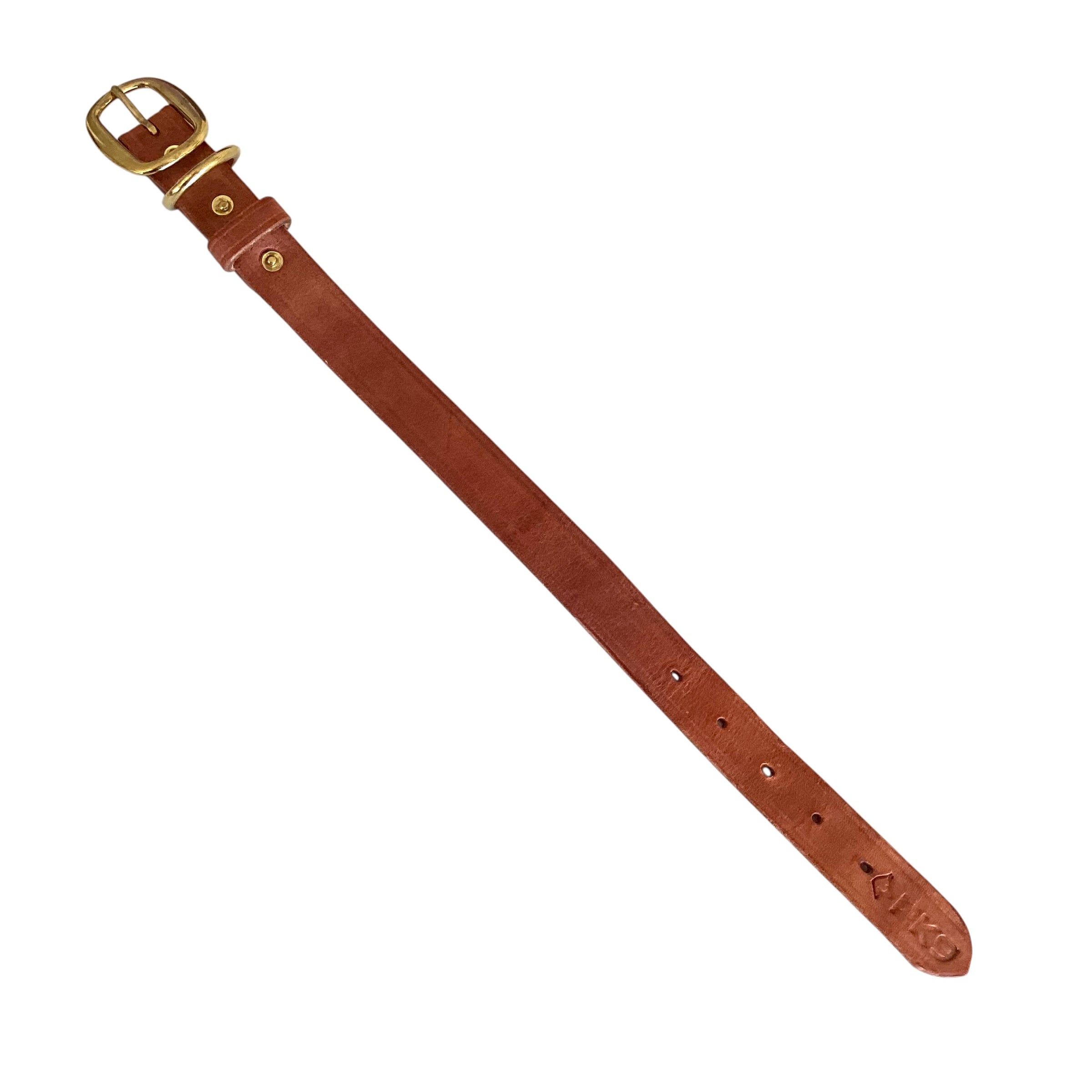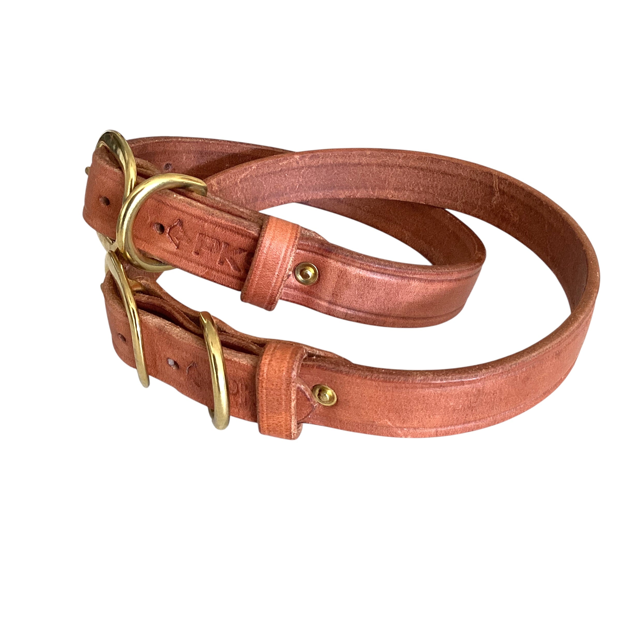 Key Features: ✔️ Thick, Full-Grain Leather Construction: Crafted from solid, full-grain leather without stitching, ensuring no weak points—just reliable durability. ✔️ Hand-Conditioned with Natural Oils and Waxes: Enhances durability and water resistance while maintaining a supple, luxurious feel. ✔️ Bevelled and Burnished Edges: Smoothly finished edges prevent chafing, ensuring your dog’s comfort during every adventure. ✔️ Solid Brass Hardware: Rust-resistant brass buckle and D-ring provide maximum security and style. ✔️ Develops a Unique Patina: Over time, the leather develops a stunning patina, making each collar a reflection of your dog’s unique journey.