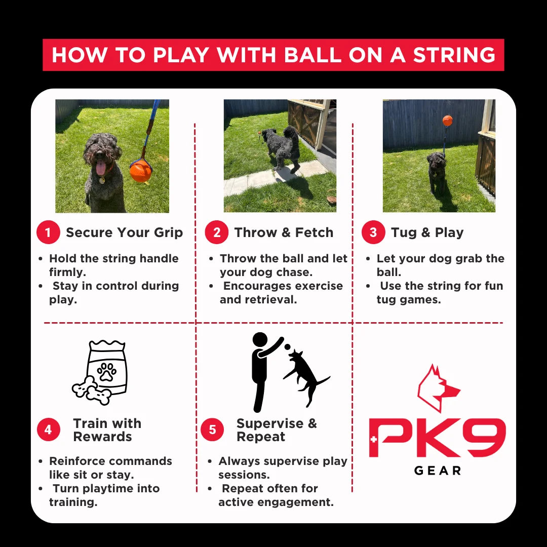 The PK9 Gear Chuckit Fetch Ball on a String combines a high-bouncing Chuckit Fetch Ball with the durability of Bluewater climbing rope and a sturdy Paramax handle. Handmade in Australia, it’s the ultimate interactive toy for fun, training, and strengthening bonds.